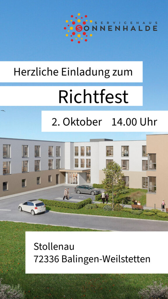 Es ist soweit: Am Donnerstag, 2 Oktober 2025 laden wir Sie herzlich zum Richtfest unseres neuen Pflegeheims in Balingen-Weilstetten ein.