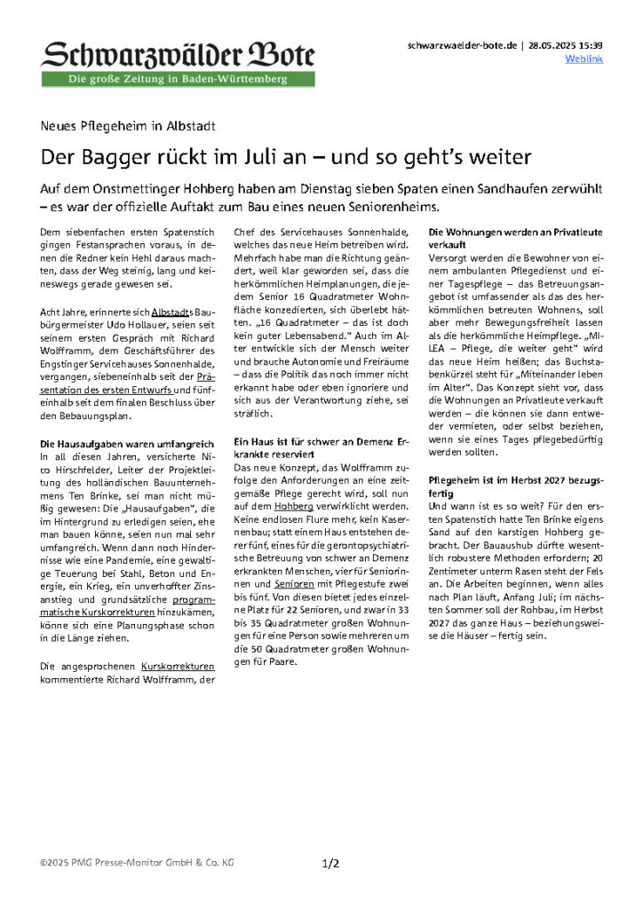Stimmen zum Spatenstich in Albstadt-Onstmettingen Beitrags-Autor:SHSRelaunch Beitrag veröffentlicht:Juni 4, 2025 Beitrags-Kategorie:News Das könnte dir auch gefallen „Tag der Pflege“ in Blumberg April 13, 2023 Die Lachfalten sind wieder da Mai 25, 2022 Neuigkeiten aus der Pflege – das ändert sich ab 1. Januar 2025 Januar 7, 2025